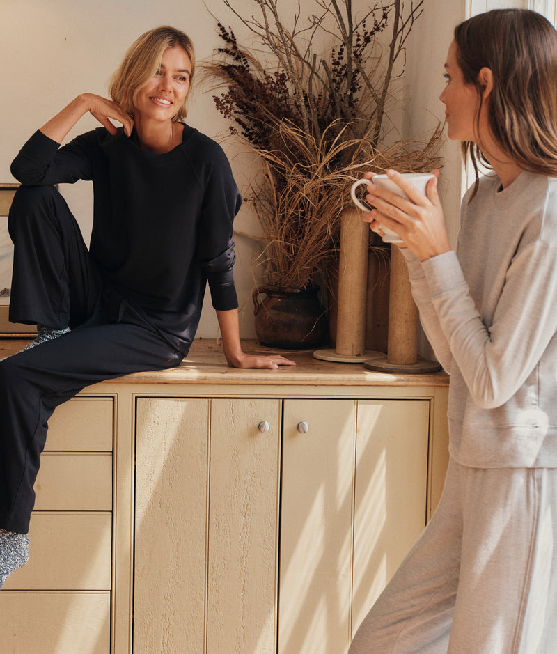 Pima Crew Wide Leg Pajama Set in English Navy Stripe