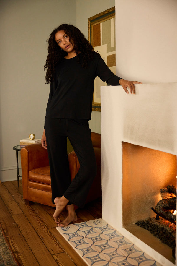 Pima Crew Wide Leg Pajama Set in Frasier Bloom$128.00